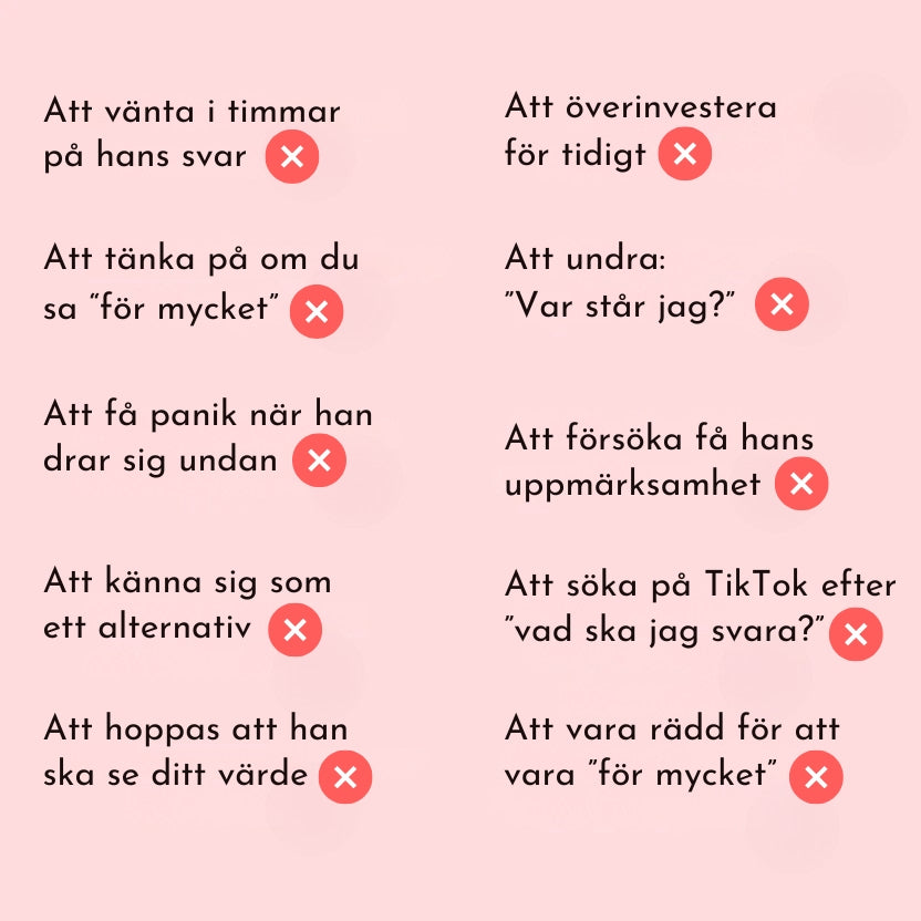 - Du lär dig snabbt att genomskåda ghosting, ursäkter och blandade signaler.